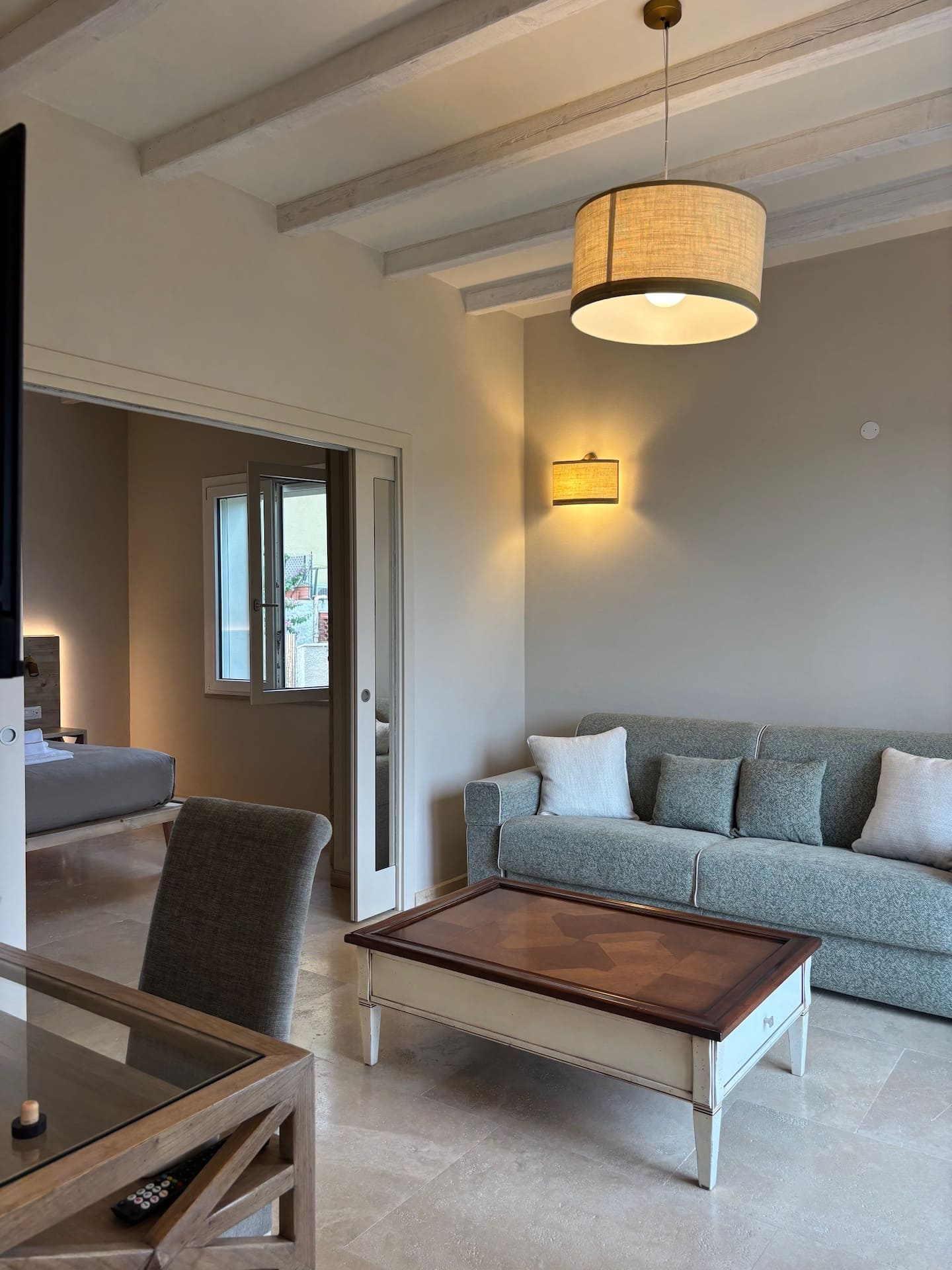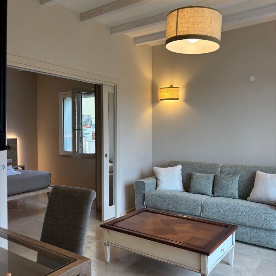 Soggiorno con divano letto matrimoniale.